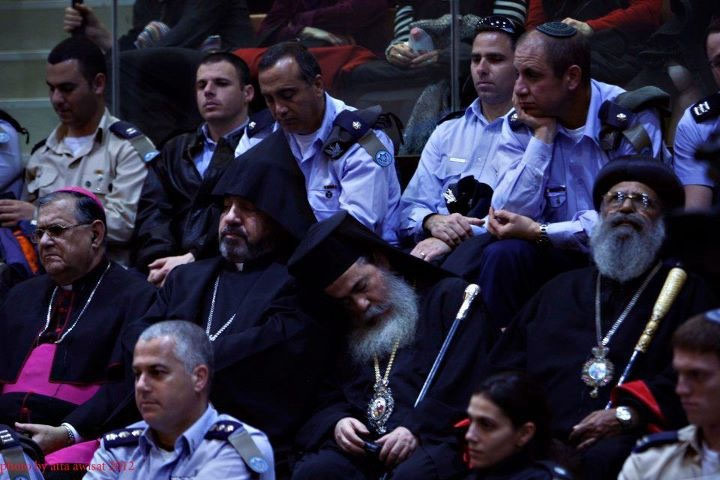 «________Ζητάμε συγγνώμην! Ανθρώπινο είναι νά μας πάρει ο ύπνος σε κάποια δημόσια εκδήλωση΄, όπως έγινε με τον Μακαριώτατο Πατριάρχη Ιεροσολύμων κ. Θεόφιλο.. Εμείς, οι άνθρωποι της Εκκλησίας. είτε από το βάρος των καθημερινών μας υποχρεώσεων, είτε από την εξάντληση λόγω της νηστείας, είτε από την έλλειψη συνθηκών καλού ύπνου, είτε από κάποιο φάρμακο κλπ. είναι δυνατό να τήν πάθουμε! 'Επειδή όμως στα Ιεροσόλυμα υπάρχει πρόβλημα, η φωτογραφία, που σας προσφέρουμε, κάνει τό γύρω της ιδία μεταξύ των χριστιανών στον αραβικό κόσμο, την μεταφέρουμε και στον ελλαδικό χώρο! Είναι σαν μια αντίδραση στην αδικία, που υφίσταται ο Μακαριώτατος πρ, Πατριάρχης κ. Ειρηναίος. Ο ένας βγάζει τα δόντια κατά τρόπο πρωτόγονο, ο άλλος, αν και διετέλεσε πνευματικό του ανάστημα,. αν και αναδείχθηκε Μητροπολίτης απο τον Πατριάρχη Ειρηναίο, μεταφορικά και τυπικά .....κοιμάται! Εμείς τήν αδικία που γίνεται στον άνθρωπο, γιατί δε όχι και στον Πατριάρχη κ. Ειρηναίο, δεν την αντέχουμε! Θα φωνάζουμε και ας είμεθα μόνοι! Ο Δικαιοκρίτης Χριστός ας ελεήσει όλους!